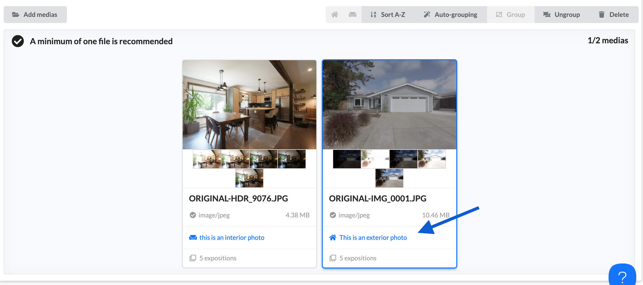 Exterior photos must be identified as such in order to receive blue sky replacement services.