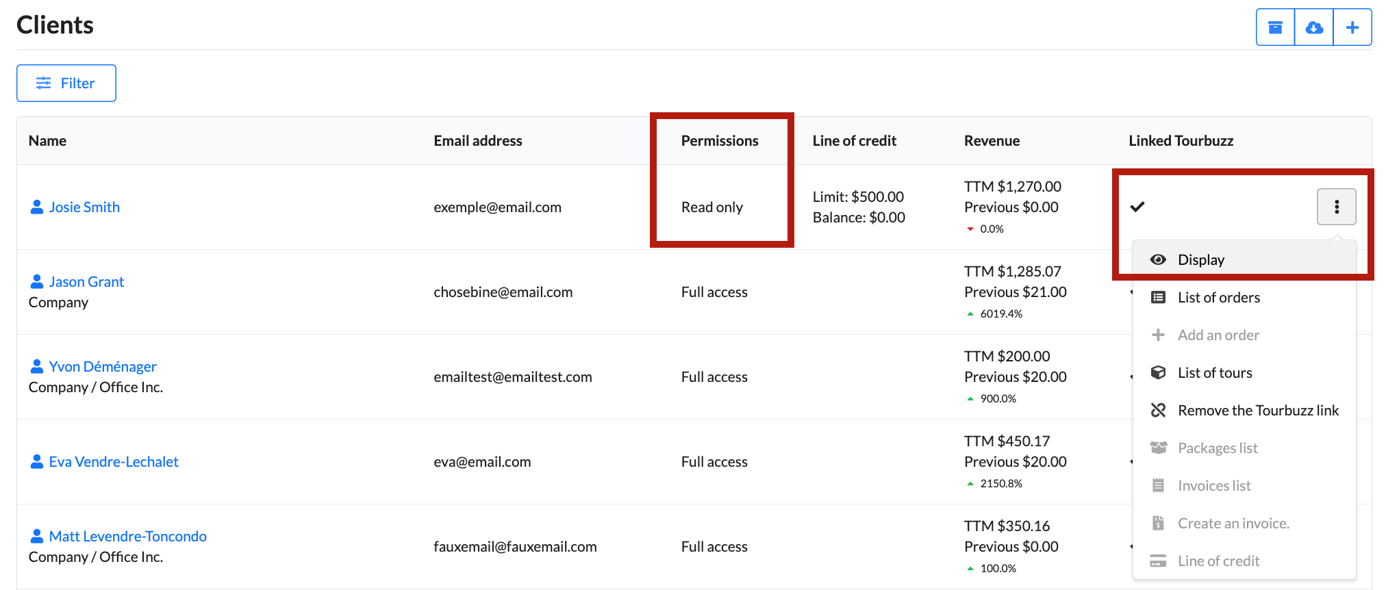 - Credit Card; the provider can view but not edit the customer profile. He can see the order list, and create an order, invoice or subscription, manage your credit card (add, save and delete them)