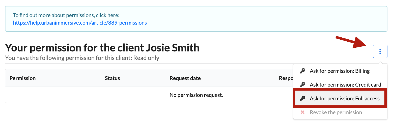Request permission. Your client will received an email asking him to accept or revoke the access.